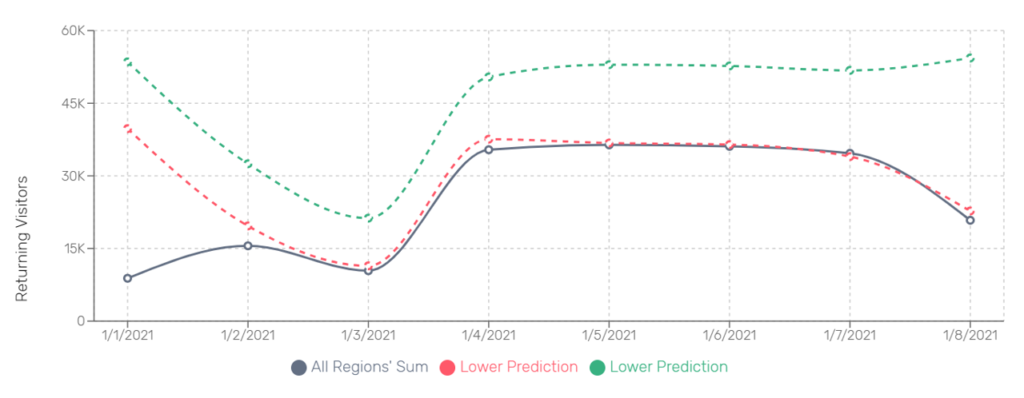 그래프 2: 강남역 재방문 방문자 수 (1/1 ~ 1/8)