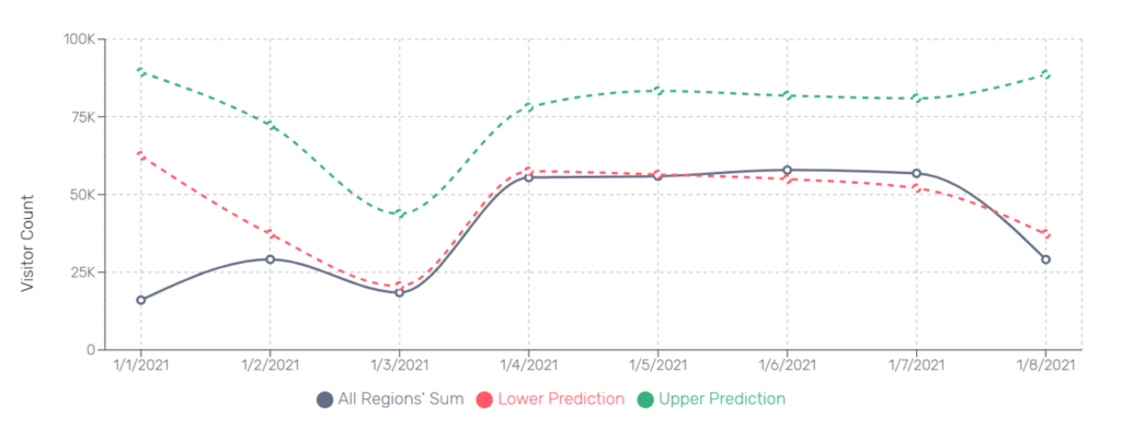 1월 6일 저녁부터 전국에 내린 눈으로 인해 자동차로 출퇴근을 하는 직장인은 물론, 대중교통을 이용했던 시민들 모두 불편함을 호소했습니다. 또한 폭설이 내린 다음날인 7일은 서울 기준 최저 기온 -14.5℃, 최고 기온이 -8.4℃에 이르는 이른바 북극한파 현상이 나타났습니다. 일일 코로나 확진자 수가 천명에 이르는 상황에서 지난 성탄절, 새해 첫날 모두 예측값에 현저히 못미치는 이동량을 보였습니다. 그렇다면 전국에 나타난 폭설과 북극한파는 강남역에는 어떤 영향을 미쳤는 지 알아보고자 합니다.